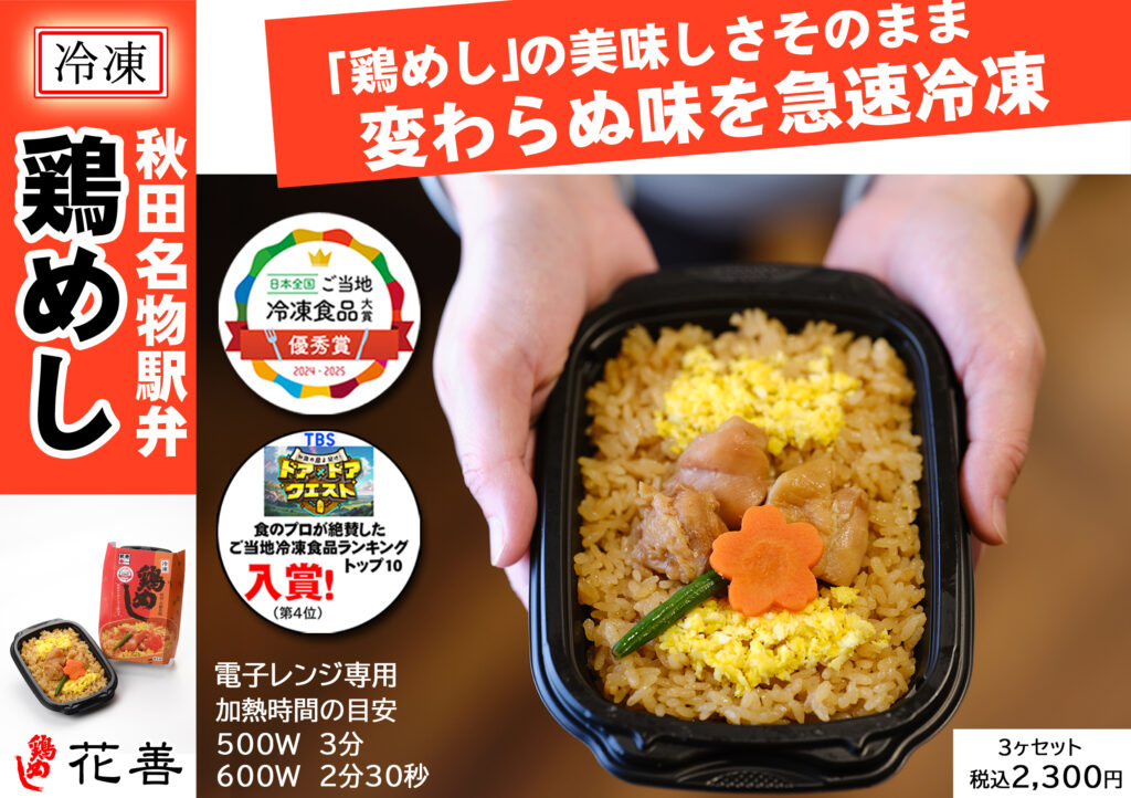 花善の鶏めしが「冷凍駅弁」になりました!最新の”プロトン凍結機”を導入し急速冷凍で美味しさそのまま、花善の味をお楽しみいただけます!