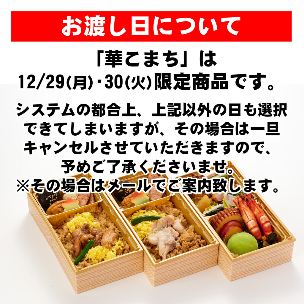 ◆お渡し日は12/29(月)、30(火)の2日間です。